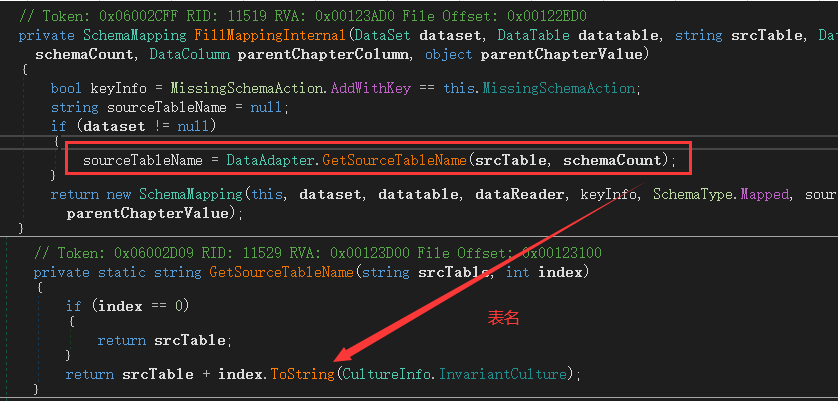这里的 srctable 是什么意思呢? 从 vs 中看是这样的: the name of the source table to use for table mapping. 乍一看也不是特别清楚,没关系,我们直接看源码就好啦,反正我也没测试,嘿嘿。