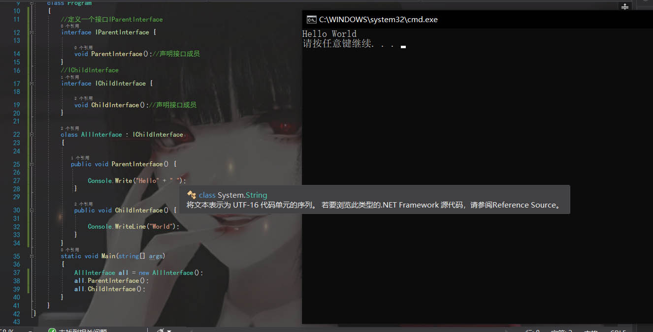 2,如果一个接口继承其他接口,那么实现类或结构就需要实现所有接口的成员