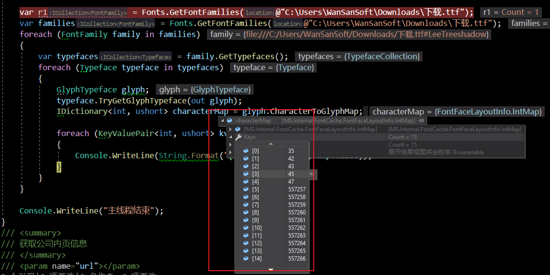 我需要拿到这些映射关系,才能解析对应数字。所以我百度搜索c# 读取ttf文件的unicode但是没有找到答案。直到用google搜索“c# read ttf unicode”,找到了一个能解决我的问题的回答。