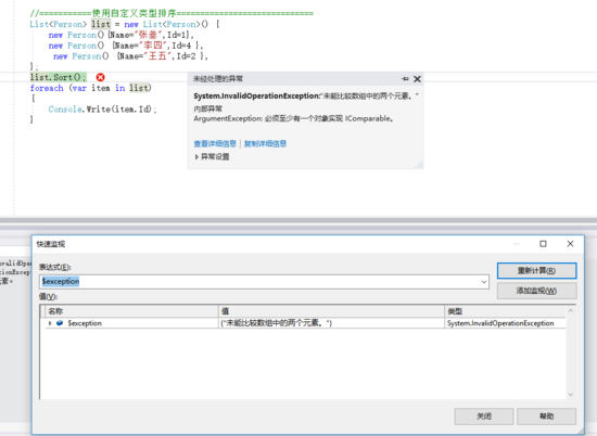 int类型是实现了icomparable这个接口的。那么如果让自定义类型person也可以排序,那么试试实现该接口;