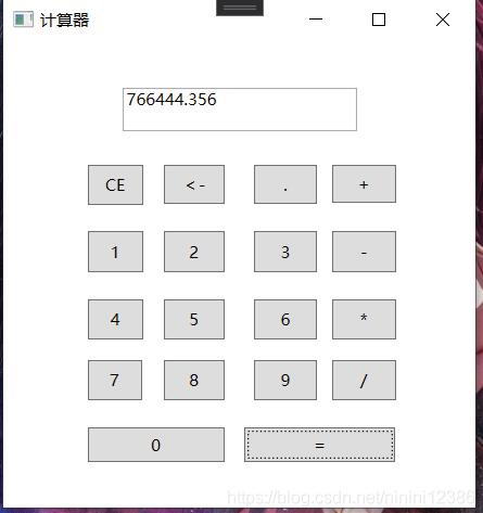 *该程序中数字通过点击对应按钮输入,运算符包含四种常用运算,除此之外还有退格以及清空操作,输入以及运算结果在上方文本框内显示