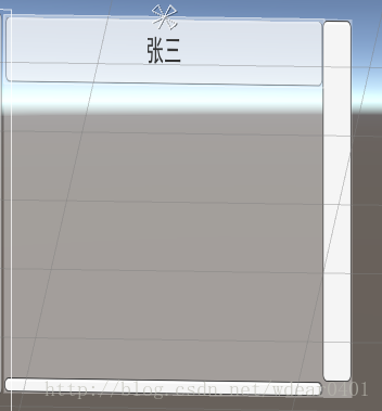 1. content 下放自定义的列表内容,如这个 item 是名为“张三”的 button 预制件。(制作为 button 因为我的项目里需要点击列表项产生交互结果)
