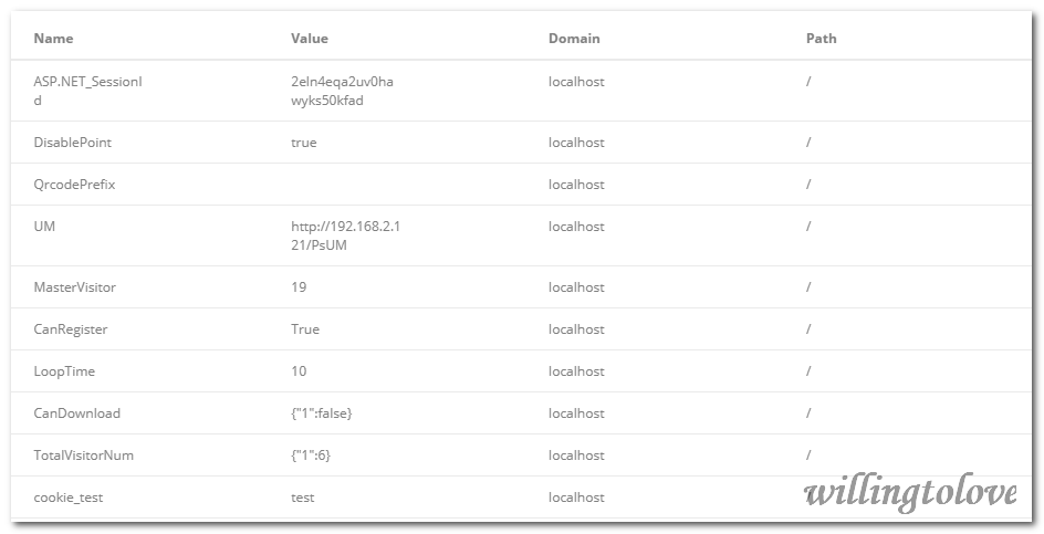 - http_cookie = asp.net_sessionid=2eln4eqa2uv0hawyks50kfad; disablepoint=true; qrcodeprefix=; um=http://192.168.2.121/psum; mastervisitor=19; canregister=true; looptime=10; candownload={"1":false}; totalvisitornum={"1":6}; cookie_test=test