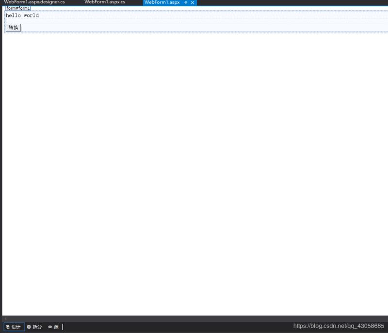 进入这么一个界面。跟windows窗体应用开发很相似。在右边也有个工具箱。有许多控件可以使用。添加一个label和button空间到窗体,并修改下id和text。要实现的功能是当点击按钮后将label中的内容转成大写。