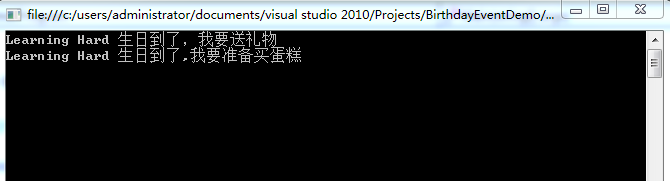现在我们知道了为什么c#要引入事件了,但是对于我们在代码中使用的事件大部分都是.net类库为我们提供的,例如控件的各种事件,我们只需要点击按钮后就会触发点击事件的,但是我们很想理解这个事件是如何触发的,我们是否可以自己定义实现事件模式的一个程序的呢?答案当然是可以的,下面就以上面生日的例子来通过代码来解释下如何实现一个事件模式的。