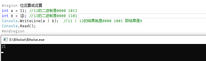 console.writeline(a | b); //11 | 13的结果就是0000 1111 即结果是15