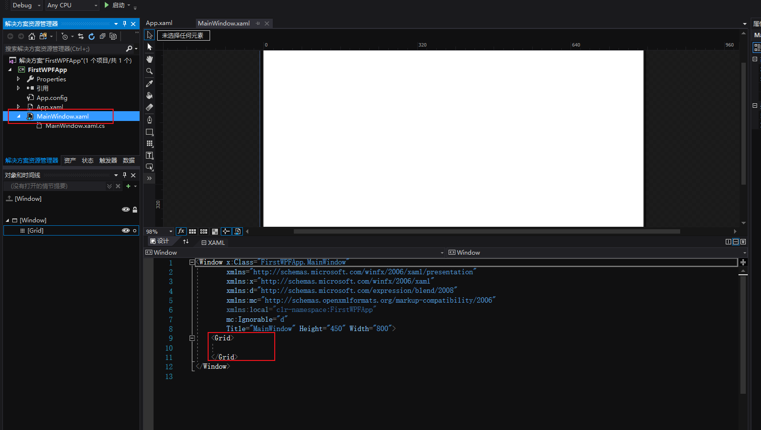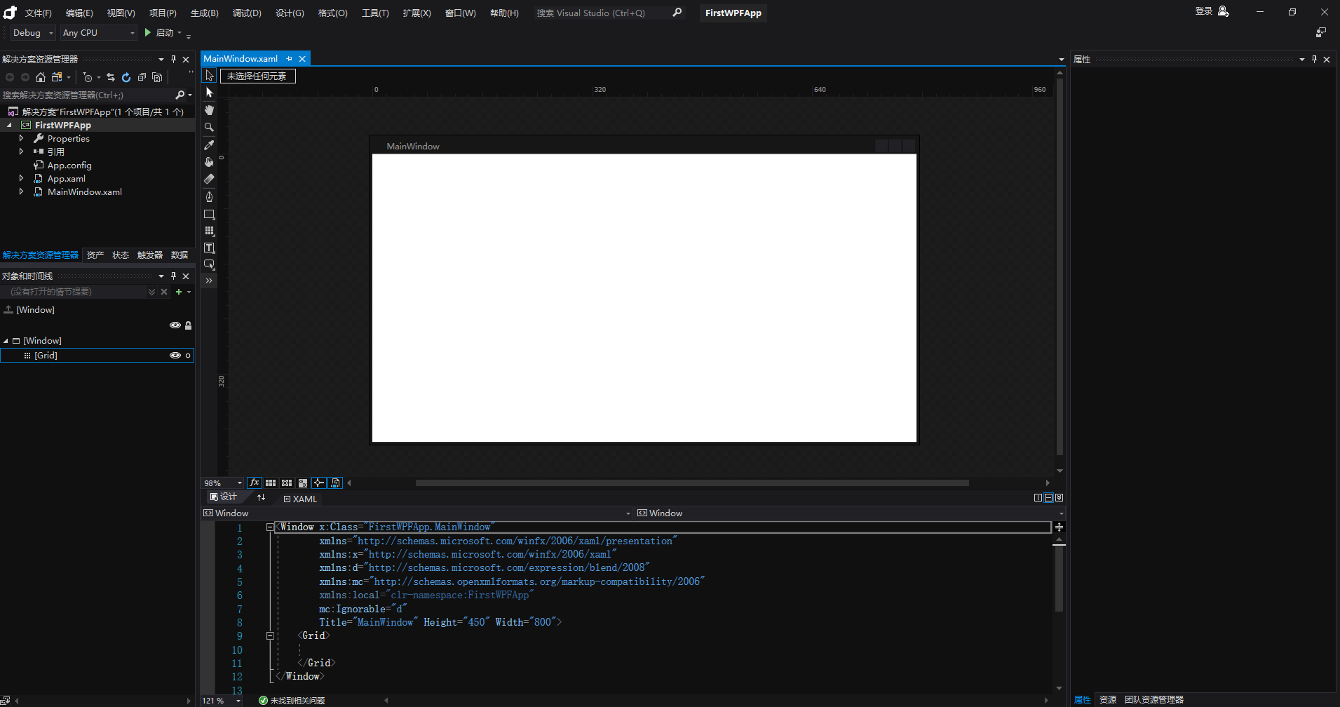 编辑mainwindow.xaml(类似安卓开发的xml语言)