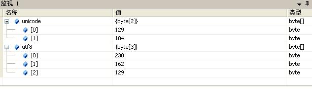 string s = "梁"; byte[] unicode = encoding.unicode.getbytes(s); byte[] utf8 =encoding.utf8.getbytes(s);