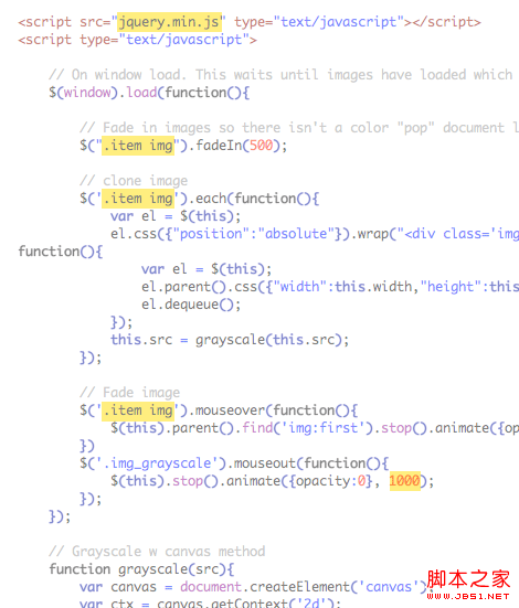 下面的jquery代码将会寻找目标图片,并生成一个灰度的版本。当你鼠标移动到图片上时,灰度图片会变成原色。
