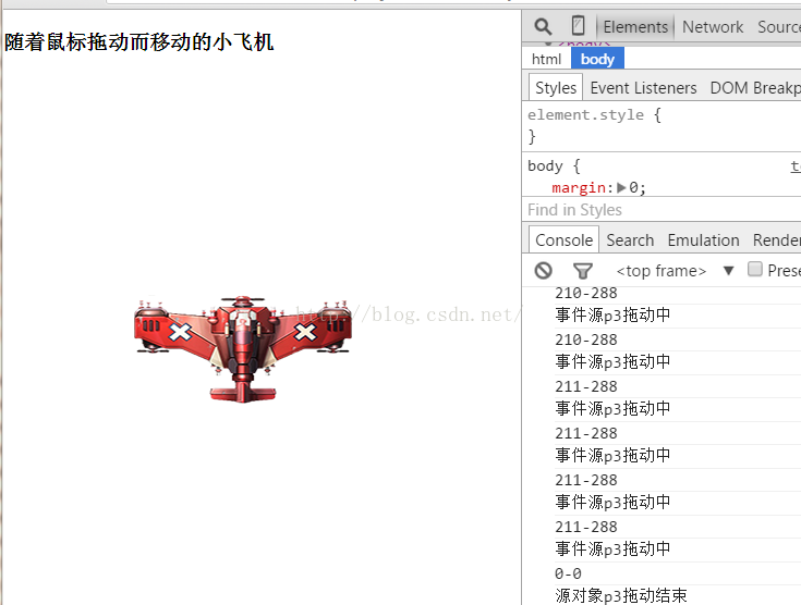 示例一:实现一个可以随着鼠标拖动而移动的小飞机
