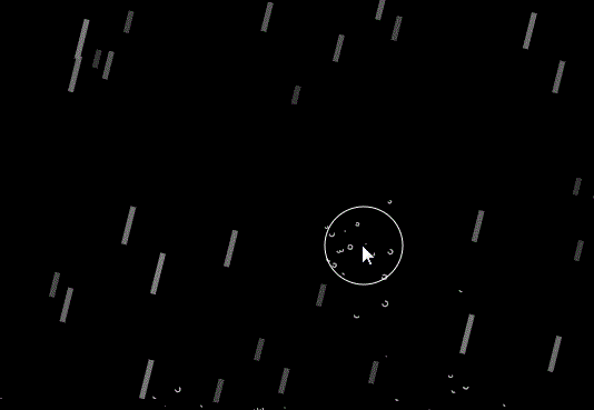 3、雨滴下落到鼠标坐标一定范围内,散成小水珠,同样的,小水珠的移动方向也和鼠标移动方向相同