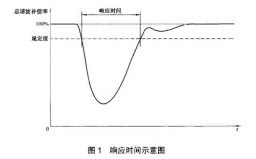 响应时间?Response?time?:滤波装置处于稳态工作情况下,突然投入或切除负载谐波电流,在滤波装置的工作范围内,总谐波补偿率不能满足规定值的时间,如下图: