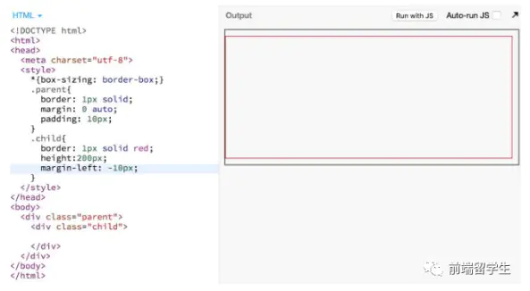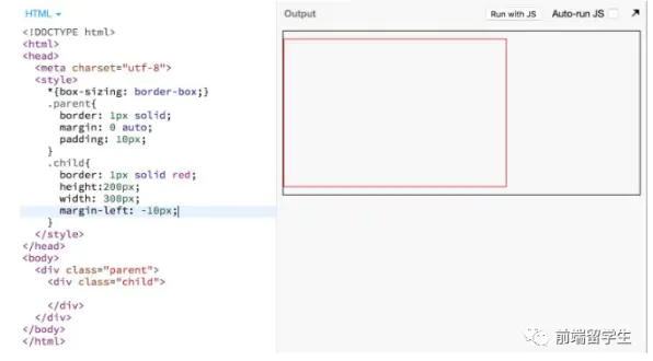 .parent 里面的 .child 宽度为 300px,现在我给他添加一个 margin-left: -10px,会发现