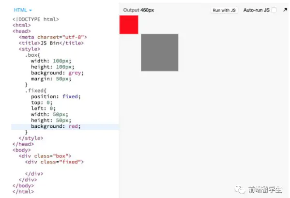 网页右边是一个 iframe,红色的 .fixed 元素相对于 iframe 视口左上角定位,与我们预期一致。