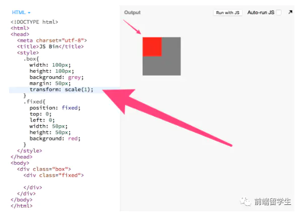 我再举第二个例子,大家都知道 position: fixed 是相对于视口(viewport)定位的。
