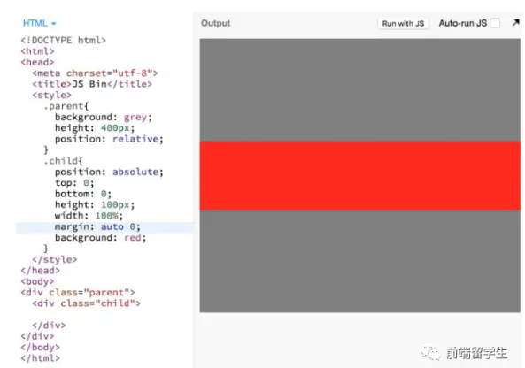 我再举一个例子,大家都知道给固定宽度的 div 加 margin: 0 auto 可以让它水平居中,很多人就问,那为什么 margin: auto 0(注意 auto 和 0 的位置反过来了)不能做到垂直居中呢?
