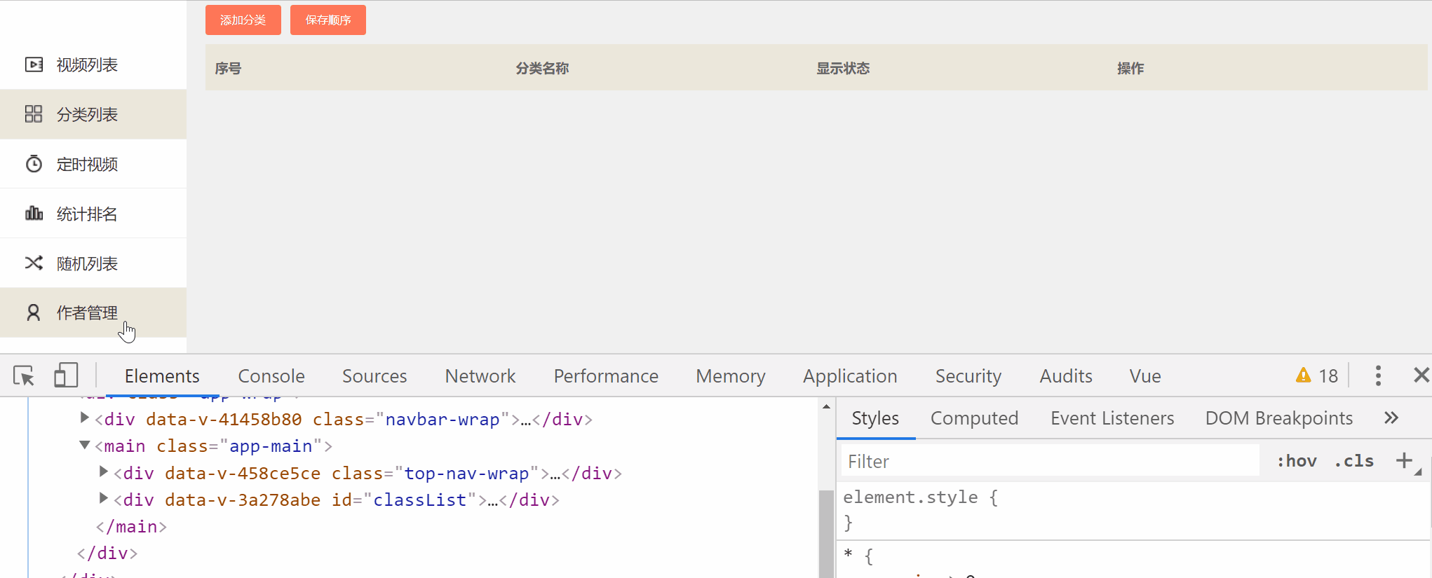 排除代码问题后,想到的可能是布局问题引发的这种情况,于是在chrome的调试工具中,一边切换路由一边观察布局的变化,终于找到了一点蹊跷