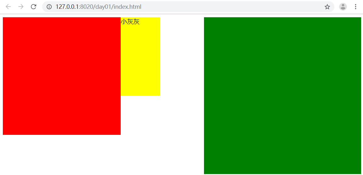 说明1:小红设置了浮动,小黄没有设置浮动,小红脱离了标准文档流,其实就是它不在页面中占位置了,此时浏览器认为小黄是标准文档流中的第一个盒子。所以就渲染到了页面中的第一个位置上。这种现象,也有一种叫法,浮动元素“飘起来了”,但我不建议大家这样叫。