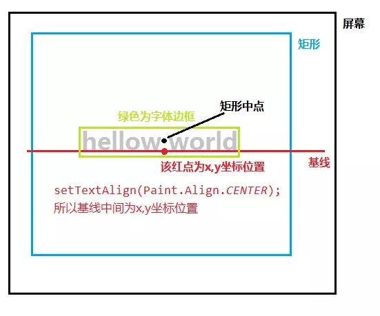 将对齐方式设置为center,那要让文字居中显示,x值就为矩形中心x值,y值也就是baseline的计算看下图