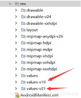 2.1 先在res包下新建values-v19和values-v21两个包,为了兼容Android高低版本