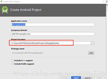 13、创建project,输入project的名字,不要使用汉字,红框处是类似于eclipse的workspace,建议换到别的盘符下