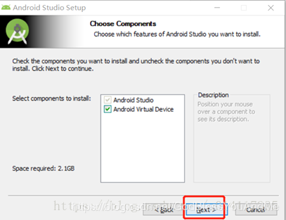 3 、选择安装目录,可以用默认的也可以更改安装目录,但最好是放在别的盘符的文件夹下,如D:/androidstudio,然后点next