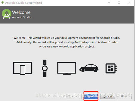 1、双击运行Android Studio安装包,点击next