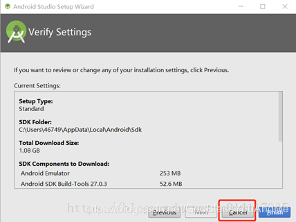 7、选择SDK,选第二项Cancel暂时不下载