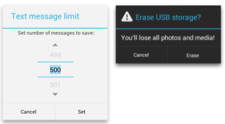 set…Button() 方法需要一个按钮标题(由字符串资源提供)和一个 DialogInterface.OnClickListener,后者用于定义用户按下该按钮时执行的操作。