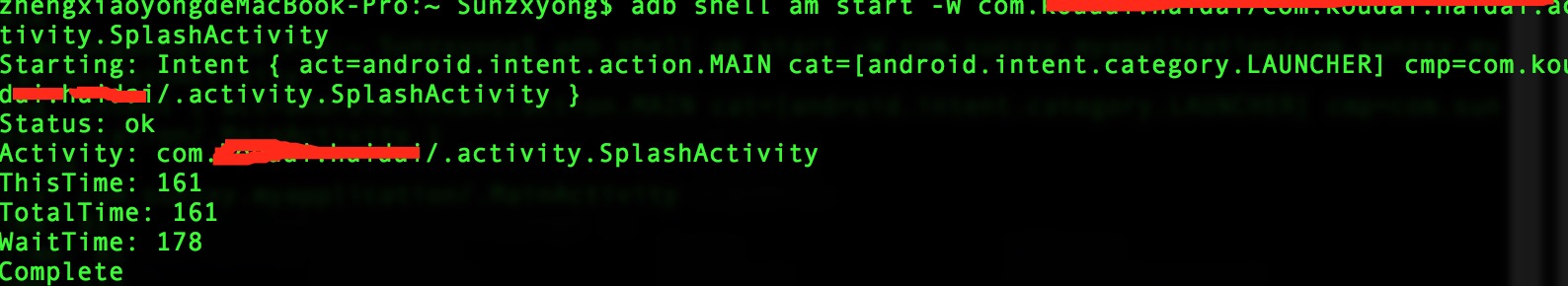 我们要测量的也就是这段时间,测量这段时间可以通过adb shell命令的方式进行测量,这种方法测量的最为精确,命令为: