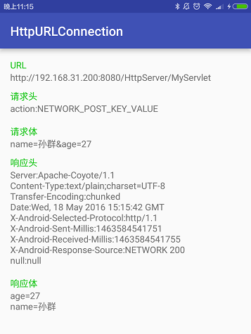 为了演示HttpURLConnection的常见用法,我做了一个App,界面如下所示: