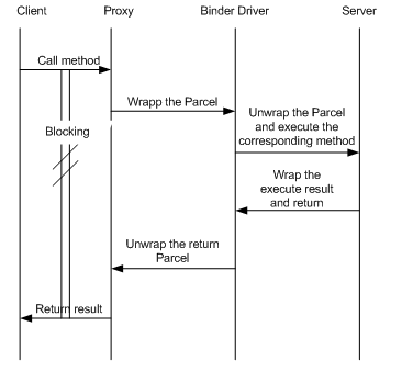 - Client端调用代理接口的方法,将Client的参数打包为parcel对象发送给内核空间中BinderDriver;