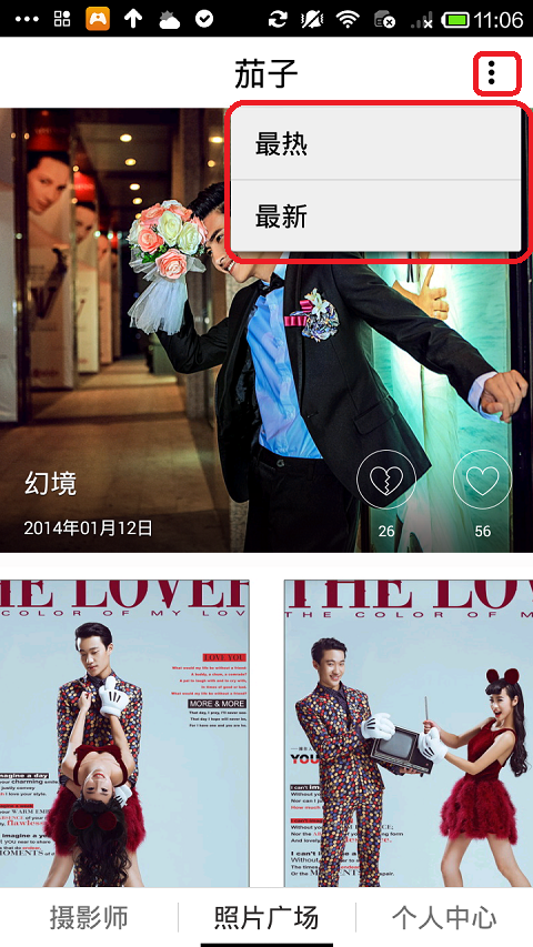 自定义菜单就直接给它设置一个actionbar的按钮,图标是那三个点