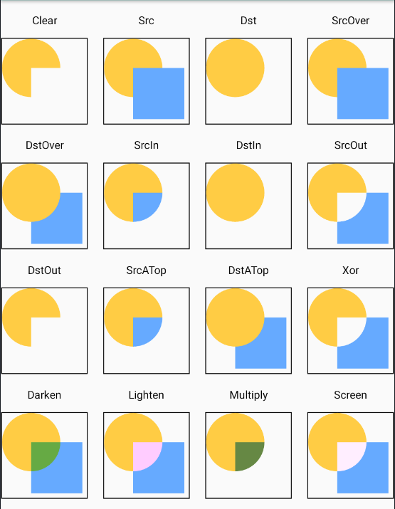 PorterDuff所有模式:https://developer.android.google.cn/reference/android/graphics/PorterDuff.Mode?hl=en#ADD