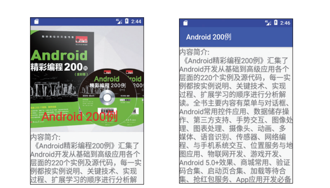 AppBarLayout布局下添加一个NestedScrollView(嵌套滚动布局)然后在该组件中添加一个TextView组件来实现滚动现实的文字