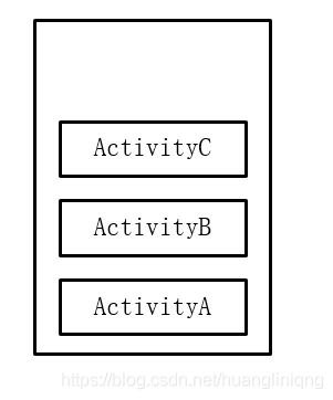 ,比如我们在activitya中有一个按钮,点击按钮跳转到activityb,activityb中有一个按钮,点击按钮跳转到activityc,那么此时该栈是这样的: