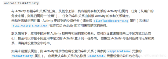 那么我们如何指定启动的activity所需的栈名称,这里就要说taskaffinity参数,这里我们参考官方文档: