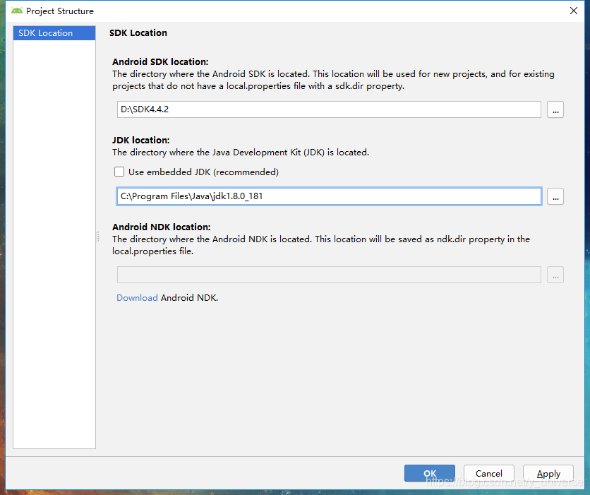 例子:d:\sdk\platforms… (选择路径时选取到sdk文件夹即可)