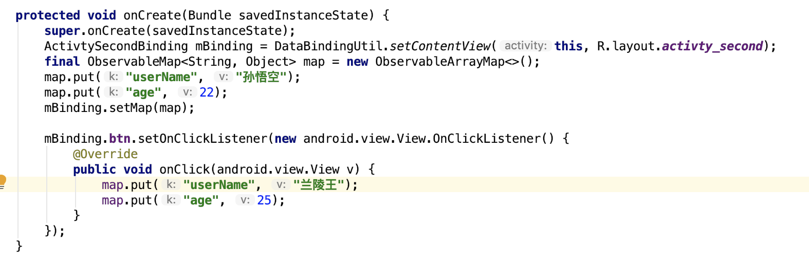 而且Google也为我们提供了一些通知类型的集合,有这三种:ObservableArrayList、ObservableArrayMap<K,V>、ObservableMap<K,V>,它和平场使用的List、Map用法一样,但是多了通知功能。