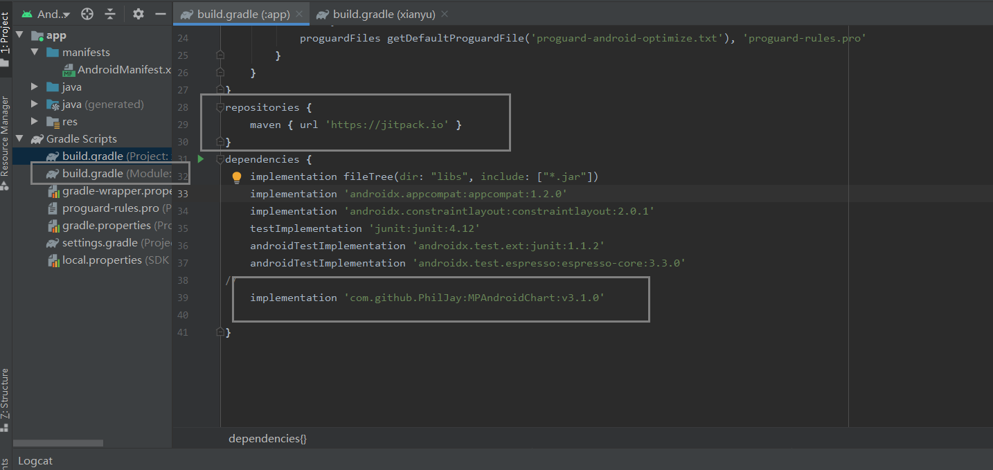 implementation 'com.github.PhilJay:MPAndroidChart:v3.1.0'