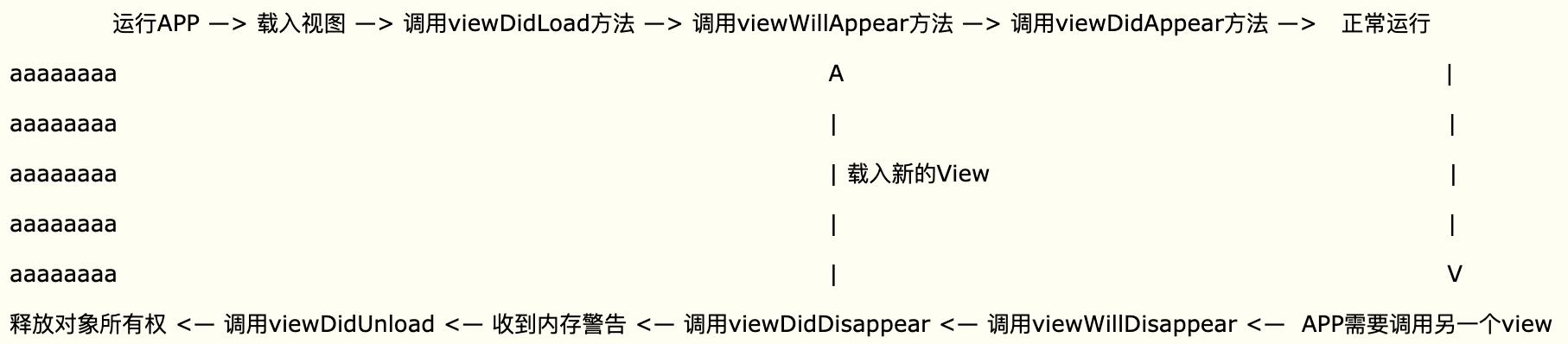 关于viewDidUnload :在发生内存警告的时候如果本视图不是当前屏幕上正在显示的视图的话, viewDidUnload将会被执行,本视图的所有子视图将被销毁,以释放内存,此时开发者需要手动对viewLoad、viewDidLoad中创建的对象释放内存。 因为当这个视图再次显示在屏幕上的时候,viewLoad、viewDidLoad 再次被调用,以便再次构造视图。
