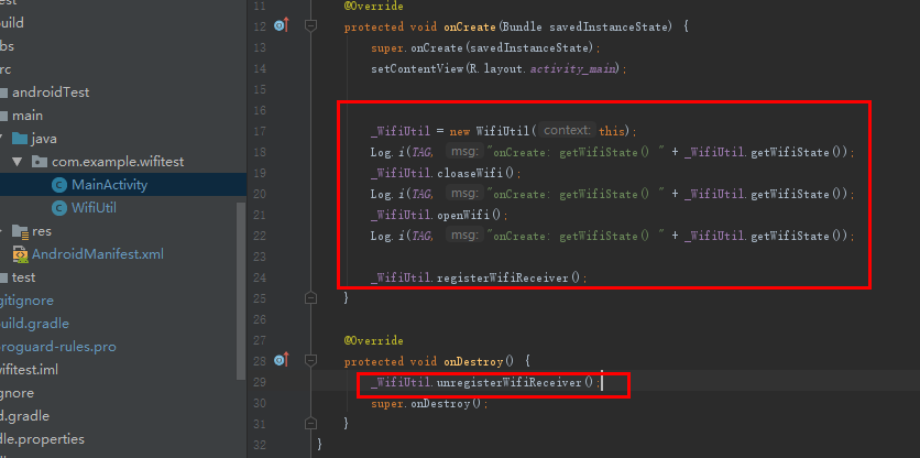 4、MainActivity ,测试 WifiUtil 封装的方法