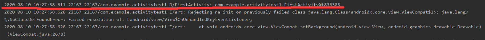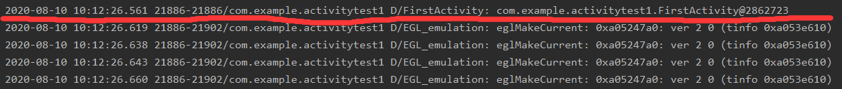 重新运行程序,查看logcat会看到已经创建了一个FirstActivity实例,如下图: