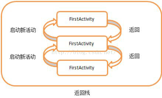 也就是说我们每点击一次Button,就会创建一个新的FirstActivity实例。当然你按几次Button也就需要按多一次的Back来退出程序
