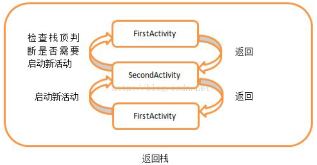 当启动模式指定为singleTop时,启动活动时如果发现返回栈的栈顶就是你要启动的活动,系统就认为可以直接使用他,不会再为此创建新的活动实例。