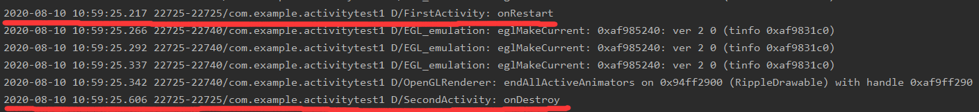 @Override protected void onRestart() { super.onRestart(); Log.d("FirstActivity","onRestart"); }