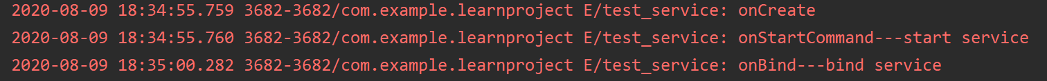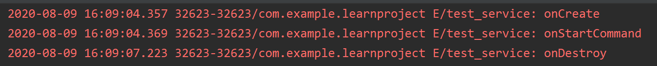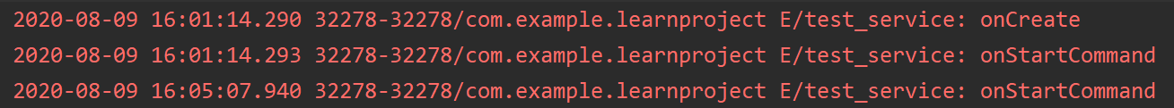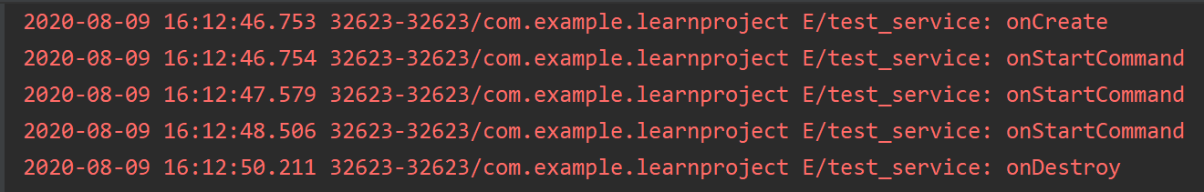 启动service,依次调用onCreate和onStartCommand方法,结果如下: