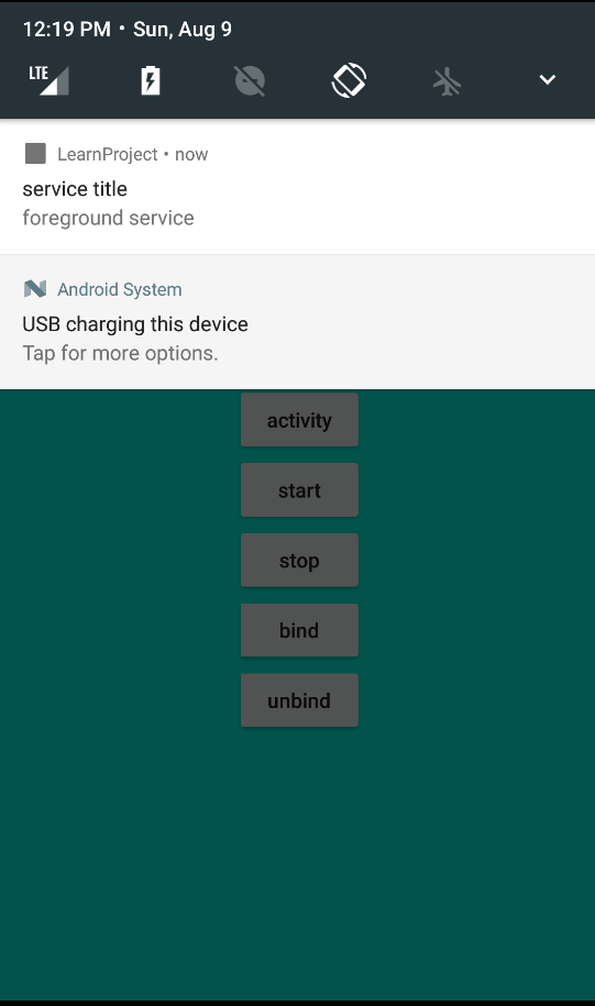 val intent = Intent(this, MainActivity::class.java) val notification = NotificationCompat.Builder(this, "channel_id") .setContentIntent(PendingIntent.getActivity(this,0,intent,0)) .setContentText("foreground service") .setContentTitle("service title") .setSmallIcon(R.mipmap.ic_launcher) .setWhen(System.currentTimeMillis()) .build() startForeground(1001, notification) override fun onDestroy() { Log.e("test_service", "onDestroy") stopForeground(true) super.onDestroy() }