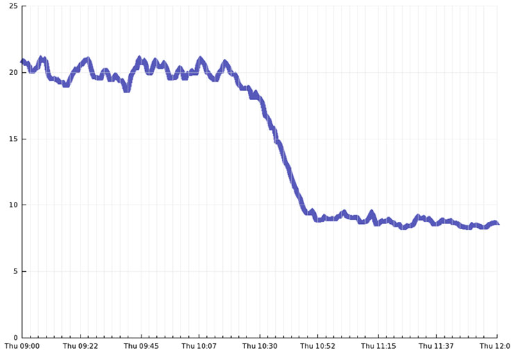 HHVM 也可以大幅度提高效率。上面的图片是我们大部分服务器迁移到 HHVM 期间的平均前端 CPU 使用率。可以看出,CPU 的使用率约为原来的 1/2。这免费地将我们的前端容量扩大了一倍,因为 CPU 使用率是我们前端机器的主要限制因素。在我们的领域内,这将显著节约服务器的开支、电力消耗和对数据中心容量的需求。