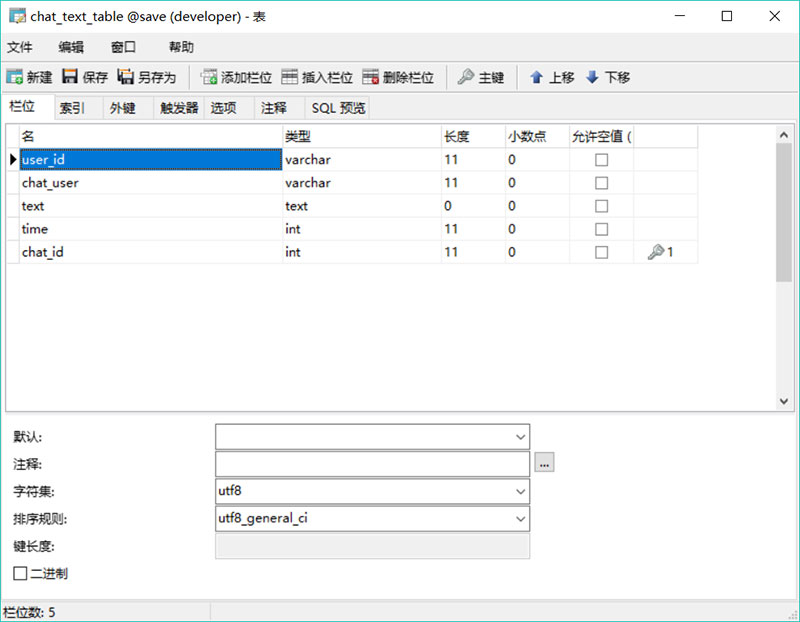 所以还要一张聊天关系表. 我是这样定义字段的: